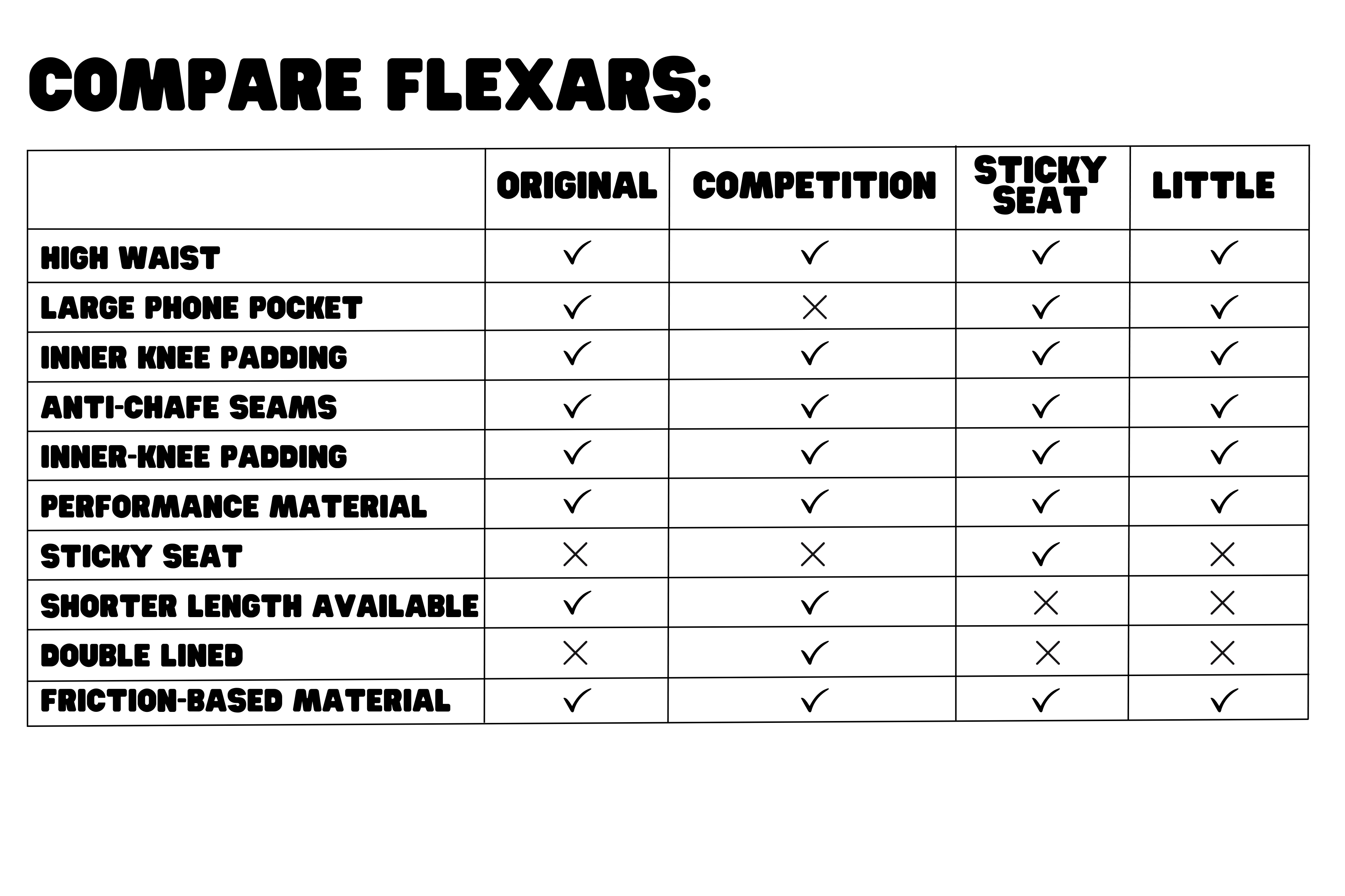For those with an inner leg length below 25 inches, the Shorter length Flexars are your new best friend. They're tailor-made for you!