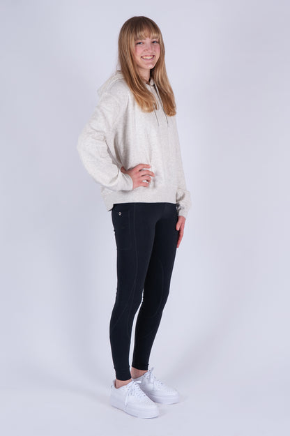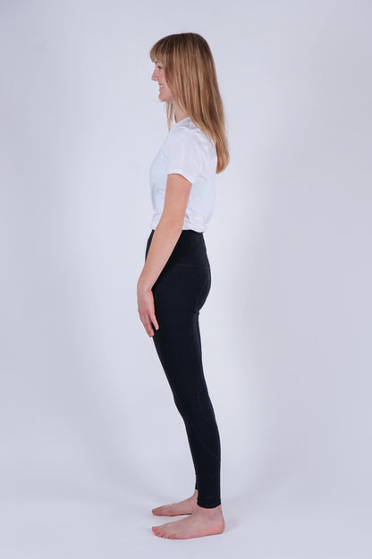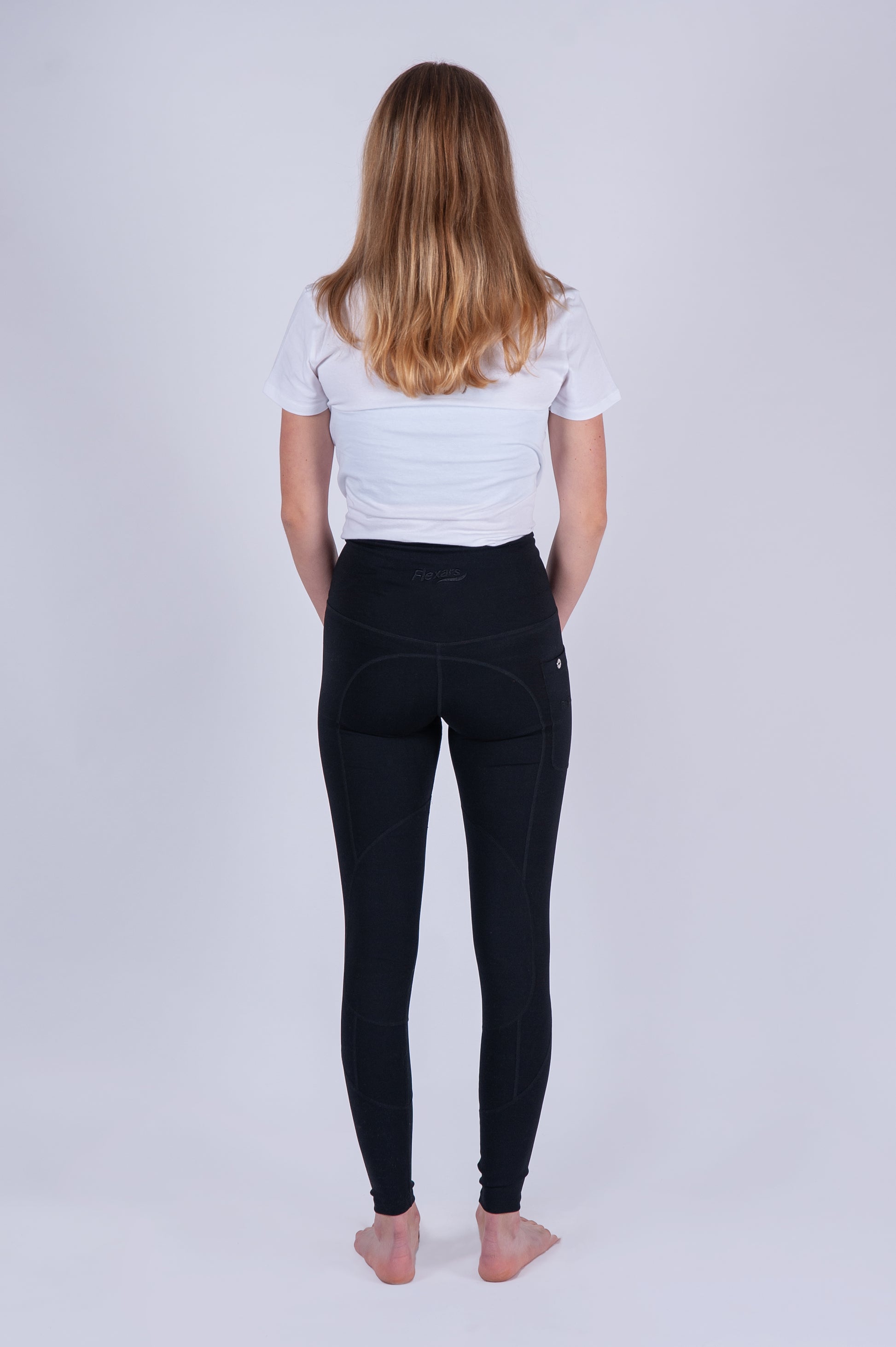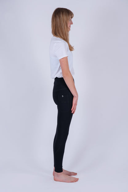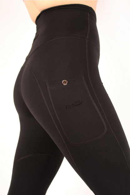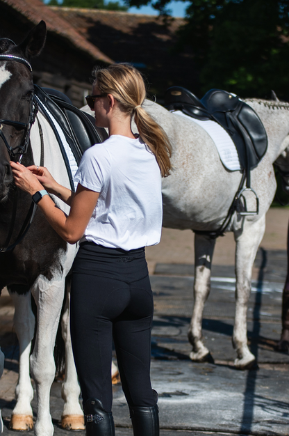 No need for a belt - once they’re up, they’ll stay up and despite being buttery soft, they are extremely hard wearing. They will give you everything you need in the saddle, but are also strong enough to wear around the yard. You can wear them for the gym, running, dog-walking and socialising too and also have a handy buttoned phone pocket.